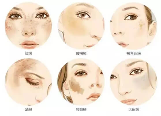 1、黄褐斑、晒斑、雀斑、老人斑、真皮斑等顽固性色斑;