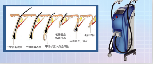强脉冲光还能够穿透皮肤,被组织中的色素团及其血管选择性优先吸收,在不破坏正常皮肤的前提下,使血液凝固,色素团和色素细胞被破坏、分解,从而达到改善毛细血管扩张、解决色素斑的效果。利用光的选择性吸收的原理,通过毛干以及毛囊里的毛头对强脉冲光的吸收,产生热量到毛囊,毛囊的温度迅速升高而坏死,从而达到永久性祛除毛发的效果。